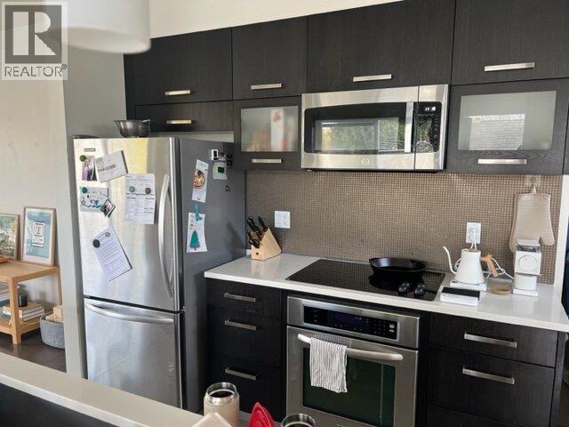 Location! Location! Location! Priced below Assessment this Unique and Customized open floor plan unit. Literally steps up to the best shopping and restaurants (TD Bank and Shoppers Drug Mart in the same building). 2 bedrooms and 2 baths, home on the quiet side of the building with an efficient lay out to maximize space which features, hardwood floors, custom cabinets and quartz countertops. Private storage locker next to the parking, large bedrooms with excess to balcony from both bedrooms, floor to ceiling windows. Great city and mountain views. Pets and rentals welcome. Amenities room with lushly landscaped outdoor common area and resident garden plots. Approx. 9'ceilings throughout the unit. Approx. 300SF outdoor patio space. Buyer to verify measurements if deemed important. (id:62103)