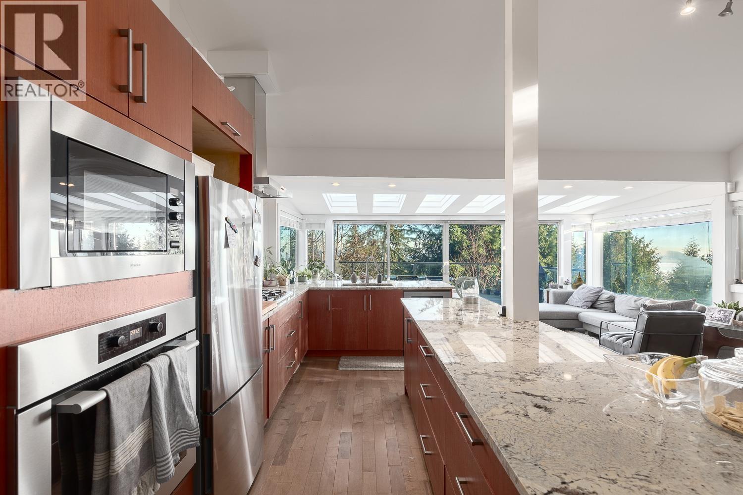 Located on a quiet cul-de-sac in the prestigious Chartwell neighbourhood, this beautifully residence offers exceptional privacy along with breathtaking forest and ocean views. Set on a generous 0.55-acre lot, the home combines modern elegance with West Vancouver´s signature natural beauty. The open-concept main level is filled with natural light and features a spacious living area, a stylish chef´s kitchen, and a dining space that flows seamlessly to a massive view deck, perfect for outdoor dining, relaxing, and enjoying spectacular sunsets. The intelligently designed layout supports both family life and entertaining with ease, offering comfort, space, and effortless functionality. Just minutes from Chartwell Elementary, Sentinel Secondary and the Hollyburn Country Club. (id:62103)