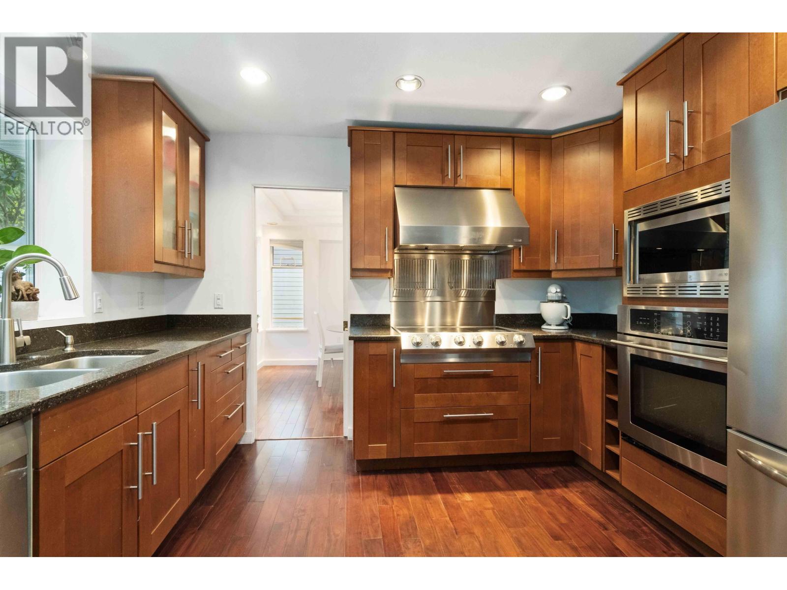 Spacious & private family home on a quiet cul-de-sac in desirable Westwood Plateau. Generous windows let in lots of natural light & offer a great view of the back yard from every room on main. Spacious kitchen with S/S appliances, granite, breakfast bar, eating area & is adjacent to the family room with cozy fireplace & sliders to the LEVEL secluded rear yard. Sunken living room w/vaulted ceilings, separate dining, laundry & den finish the main. Large primary bdrm has a 4 piece ensuite & a sizable deck that overlooks the yard. Recreation room with wet bar, office, 4th bedroom, bathroom & storage are below. A/C, inground sprinklers & beautiful hardwood floors. Amazing location, with proximity to great hiking trails, close to shopping, excellent schools & recreation. NEW FURNACE just installed. (id:62103)