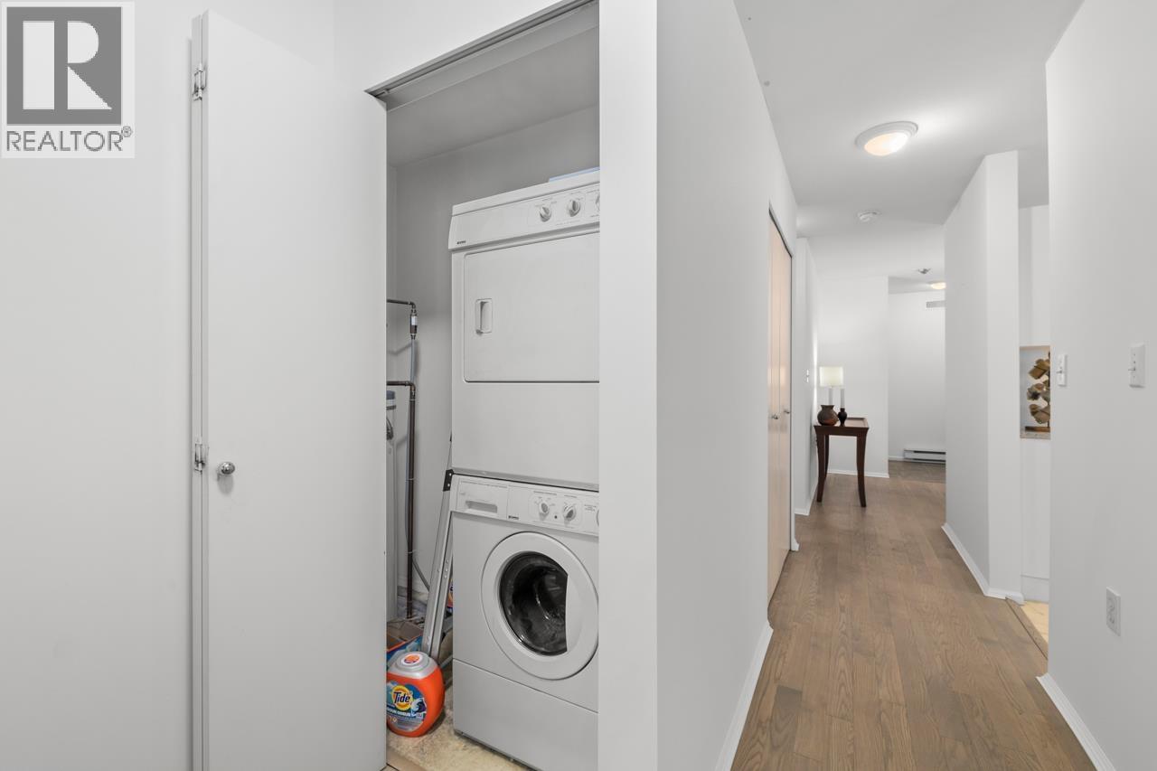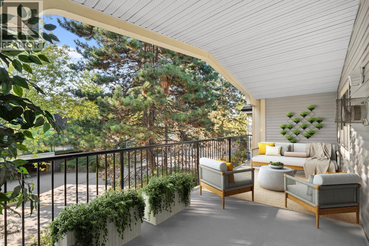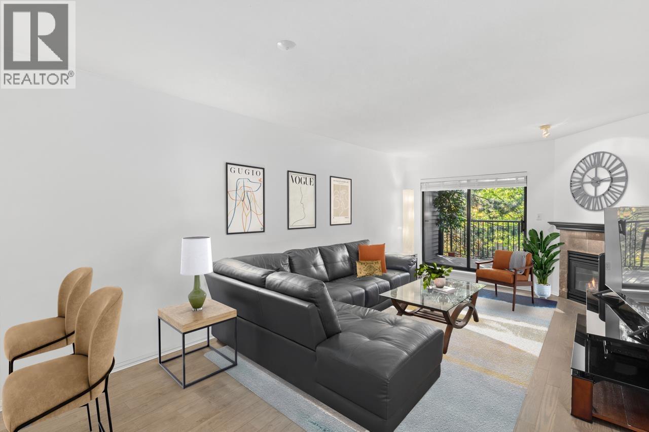 Downsizing Dream Spot in a 55+ Building that Offers So Much... This beautiful top-floor 2 bedroom, 2 bathroom home offers 1,014 sq. ft. of thoughtfully designed living space in a well-maintained building. Recent updates include hardwood flooring and fresh paint throughout, creating a bright, modern feel with an inviting touch. Large windows fill the home with natural light, while the spacious layout balances comfort and functionality. Features include a cozy gas fireplace, in-suite laundry, secure underground parking, and a storage locker. The large covered deck is a real bonus - a perfect year-round retreat for relaxing or entertaining. A must-see property, ideal for buyers looking to downsize without compromise. (id:62103)