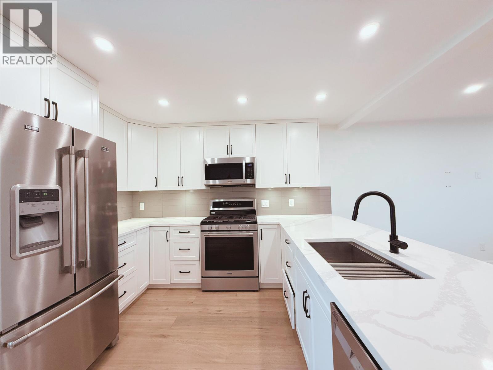 TOP-floor 3-bedroom, 1-bath suite in a PRIME location, beautifully updated with high-end renovations throughout. This bright home features an open living space, modern kitchen with quality cabinetry, newer appliances, gas stove, and a large island perfect for everyday living and entertaining. Enjoy access to a spacious sundeck and a flat, fully fenced yard with peek-a-boo mountain views. The suite includes heated bathroom floors, closet organizers and upgraded windows for comfort. Tons of parking available on the property. Conveniently located close to schools, recreation and shopping. Utilities shared with the downstairs tenant 60/40. A rare opportunity for anyone seeking a stylish, move-in-ready home in an excellent neighborhood. (id:62103)