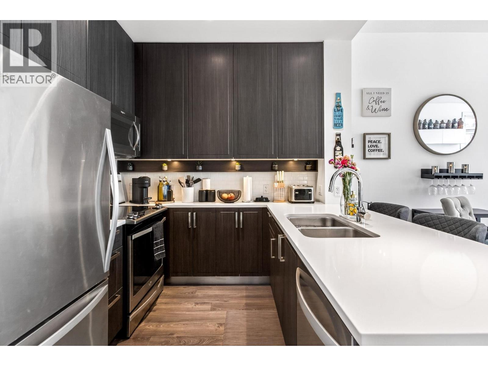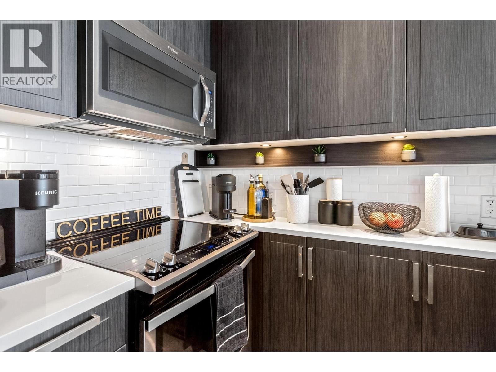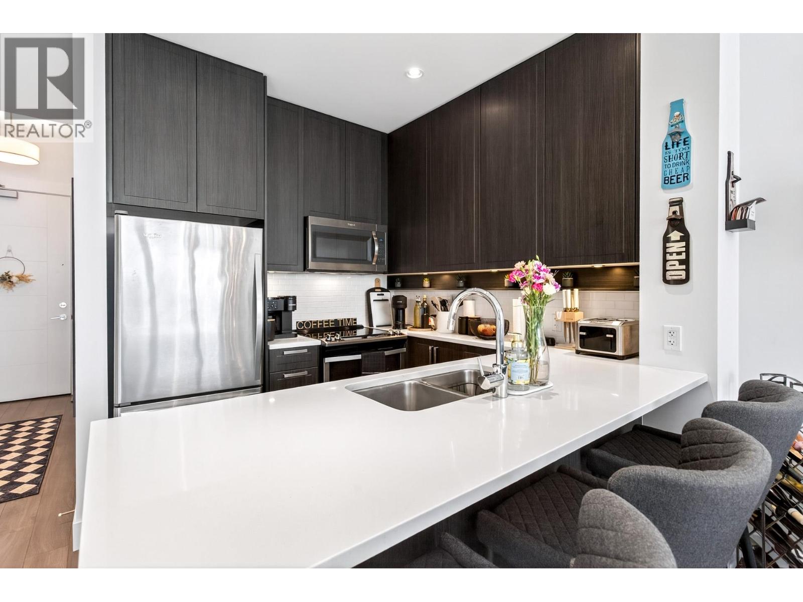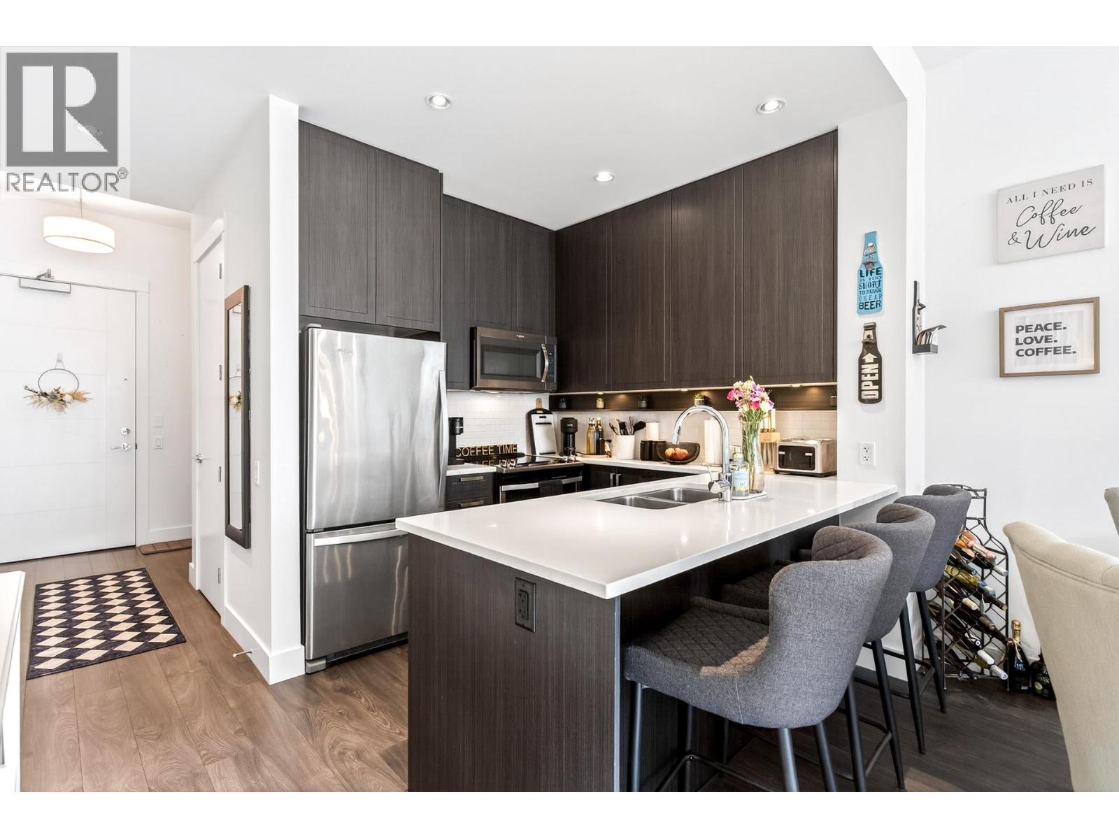 Welcome to Fremont Emerald by Mosaic! Immaculate 1 Bed + DEN facing the quiet side of the building. This unit boats 10' ceilings with lots of natural light, stainless steel appliances, quartz countertops, radiant floor heating, a LARGE DEN suitable for an office or nursery, and offers executive living in the highly desirable Fremont Community. Full access to the River Club (clubhouse, pool, basketball court, kids play, and exercise room). Close to shopping, Costco, Wallmart, golf course, restaurants and the stunning Port Coquitlam Dykes. Comes with parking, storage, and bike locker. This is a must see! OPEN HOUSE SATURDAY FEB 21 (2-4PM). (id:62103)