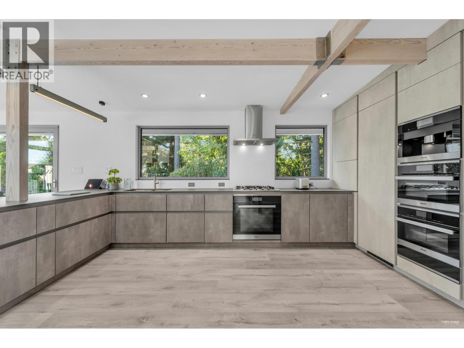 This striking West Coast modern residence perfectly combines architectural elegance with natural serenity and view of the ocean. Inside, the open-concept layout is bright and airy. Soaring ceilings and exposed beams add character and volume. Floor-to-ceiling windows invite natural light and frame lush greenery. The uncluttered living and dining areas extend seamlessly to a sunlit balcony, perfect for entertaining or relaxing in complete privacy. A sleek, minimalist kitchen features premium Miele appliances, custom cabinetry and abundant workspace. The lower level offers a spacious, flexible area with endless possibilities, ideal as a private gym, additional bedrooms or customized to suit family´s lifestyle needs. The uniquely designed garage ideal for collectors or design enthusiasts. This home offers a rare balance of sophistication and calm, making every day feel like a retreat in nature. (id:62103)